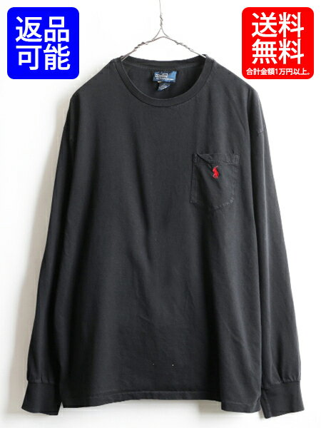 人気 黒 ■ POLO ポロ ラルフローレン 胸 ポケット付き コットン 長袖 Tシャツ (男性 メンズ L ) 古着 ポケT ロンT 長袖Tシャツ ポニー刺繍| 【USA古着】中古 RALPH LAUREN 無地 カットソー プルオーバー クルーネック ロングスリーブ ワンポイント ブラック 胸ポケット