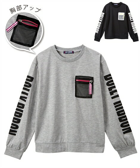 Tシャツ カットソー キッズ 長袖 ロゴプリント ゆる 女の子 子供服 ジュニア服 トップス 黒/杢グレー 身長140/150/160cm ニッセン