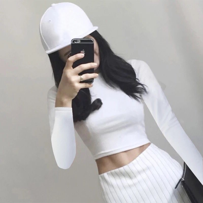 送料無料カットソー 長袖 クルーネック ショート丈 ヘソ出し セクシー レディース トップス Tシャツ へそ出し カジュアル SEXY シンプル 無地 単色 ソリッドカラー 女性用 婦人用 白 黒 灰色