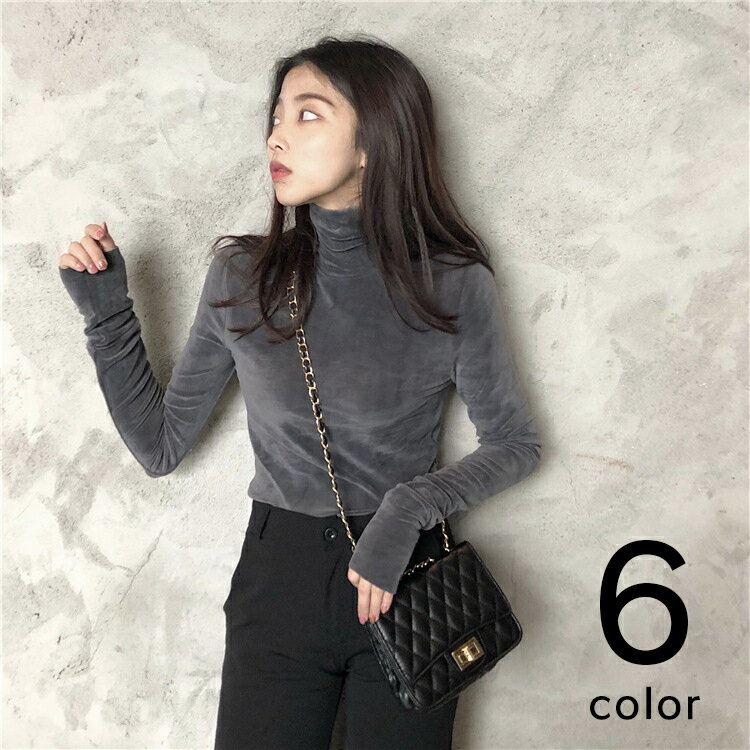 送料無料カットソー トップス レディース ベロア風 光沢 タートルネック シンプル 長袖 オフィス オフィスカジュアル 秋冬 ブラック 黒 ワインレッド グレー カーキ モスグリーン ネイビー レッド 赤